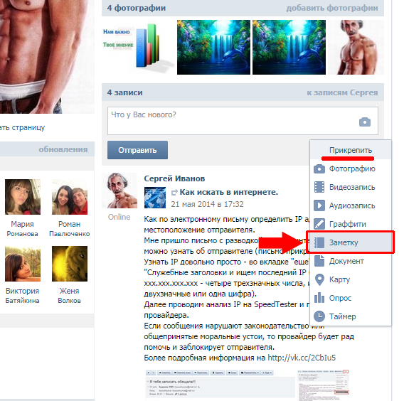 Как создать или добавить заметки Вконтакте