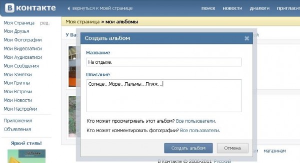 - Добавление фотографий и создание альбома