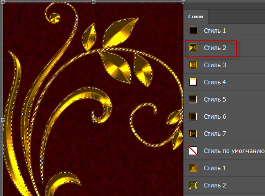 При желании, Вы можете сохранить созданные стили слоя для золотого текста, для того, чтобы потом применять их на любой другой текст. Для того, чтобы сохранить стили слоя, в палитре Слои (Layers) кликните по слою с текстом, чтобы сделать его активным, затем откройте палитру Стили (Styles panel) (Окно – Стили) (Window > Styles) и в нижней ее части кликните по кнопке Создать новый стиль (Create new style).
