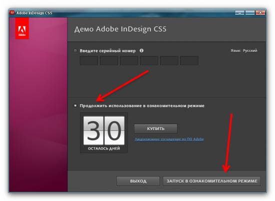 ΠΠΎΡΠ»Π΅ ΡΡΡΠ°Π½ΠΎΠ²ΠΊΠΈ Π²Ρ Π΄ΠΎΠ»ΠΆΠ½Ρ Π°ΠΊΡΠΈΠ²ΠΈΠ·ΠΈΡΠΎΠ²Π°ΡΡ ΡΠ²ΠΎΡ ΠΊΠΎΠΏΠΈΡ InDesign. ΠΠ΅ Π½Π΅Π»ΡΠ·Ρ Π±ΡΠ΄Π΅Ρ ΠΈΡΠΏΠΎΠ»ΡΠ·ΠΎΠ²Π°ΡΡ Π±Π΅Π· Π°ΠΊΡΠΈΠ²ΠΈΠ·Π°ΡΠΈΠΈ.