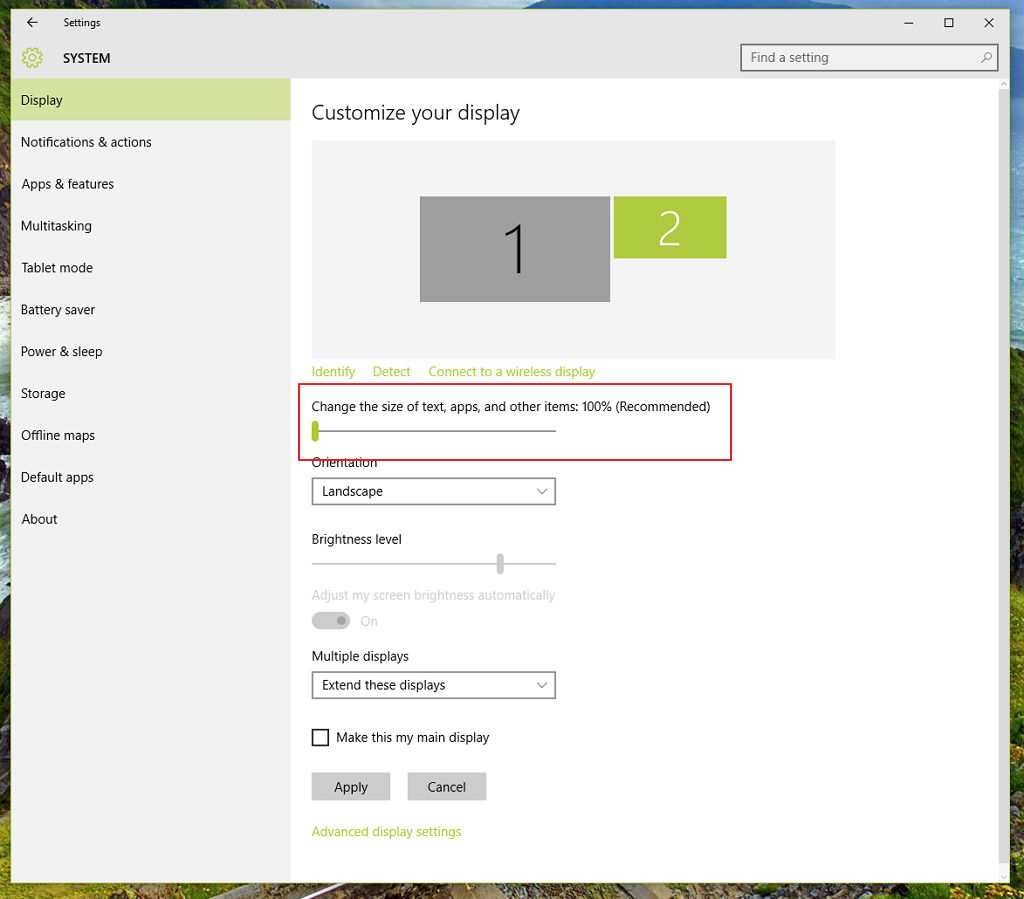 - на Control Panel > Appearance and Personalization > Display