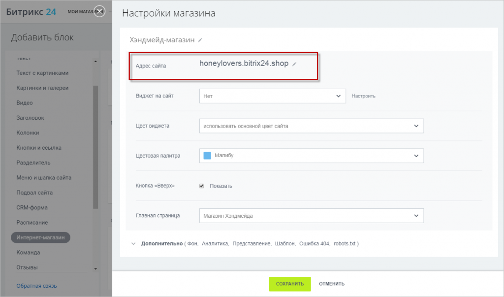Мы переработали интерфейс выбора цвета для сайтов и интернет-магазинов. Теперь вы можете выбрать любой цвет для текста и фона, изменить непрозрачность цвета и фоновое изображение блоков.