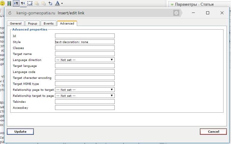 Изменение стиля отображения ссылки в тексте