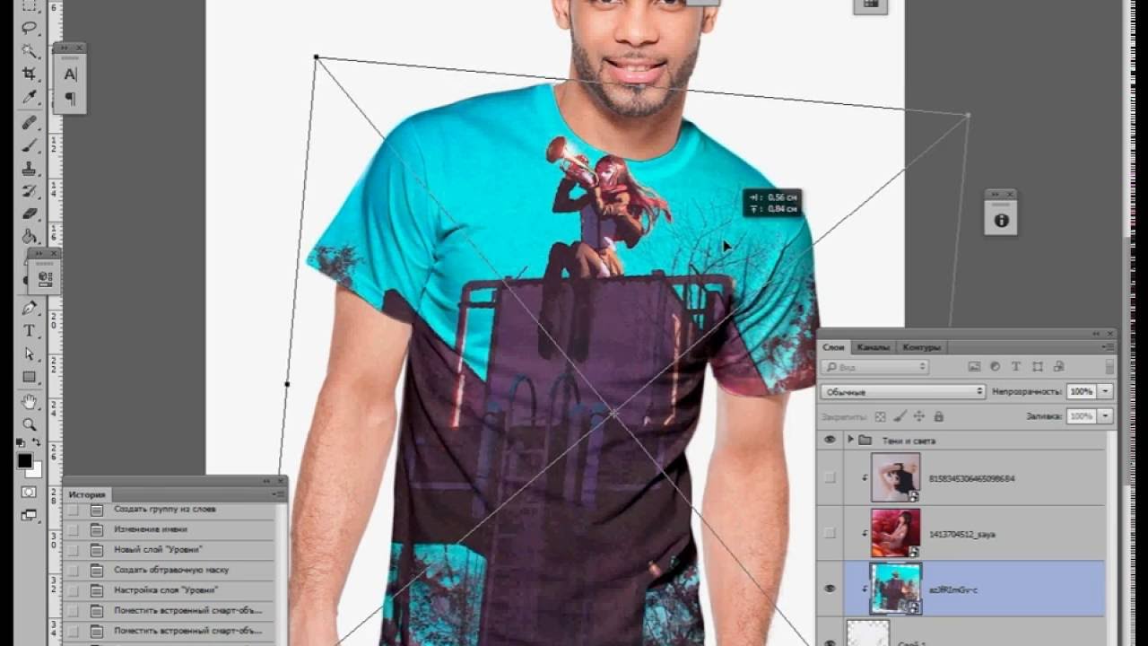 - Нажмите Ctrl + T , чтобы активировать инструмент Transform . Поместите рисунок там, где вы хотите, чтобы он появился на рубашке.