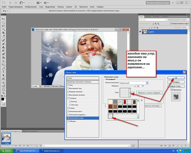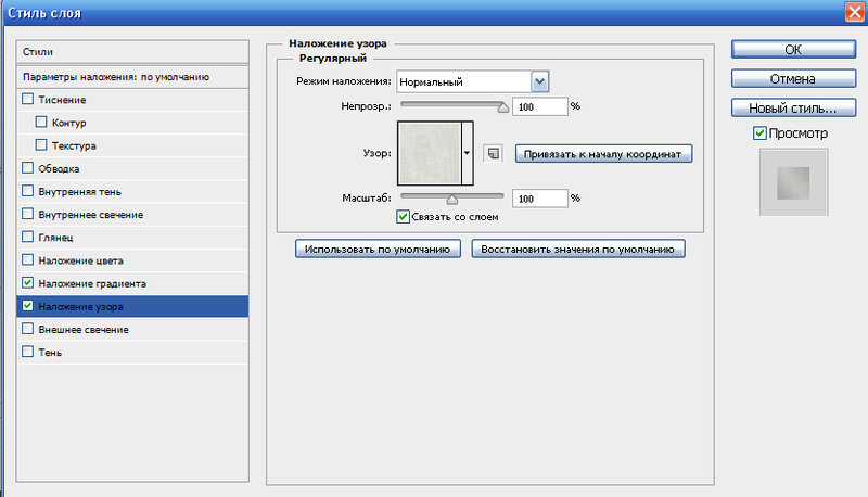 Наложение узора в «Стилях слоя».