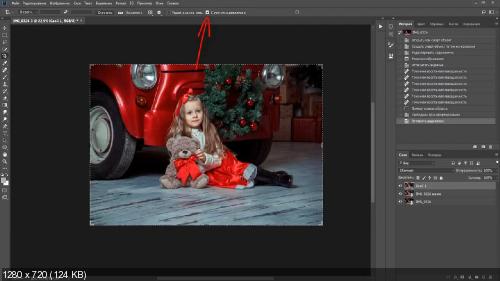 Что бы это исправить просто выберете инструмент «Перемещение» и перетащите эту фотографию на левую рамку.