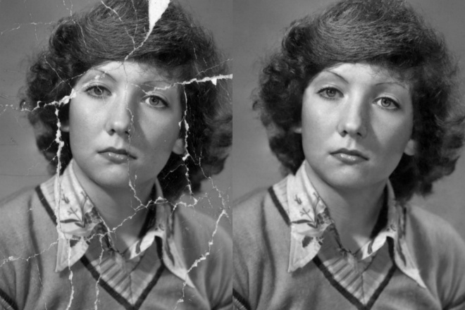 Это устранит разрывы на вашей фотографии и удалит любые пятна, вызванные плесенью и повреждением водой.