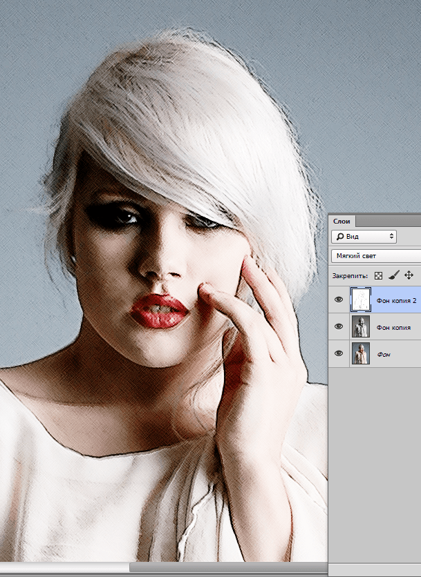 Чтобы завершить эффект, измените режим наложения верхнего слоя на «Мягкий свет» (Soft Light).