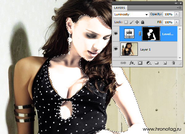 Уменьшение непрозрачности слоя Яркость/Контрастность.
