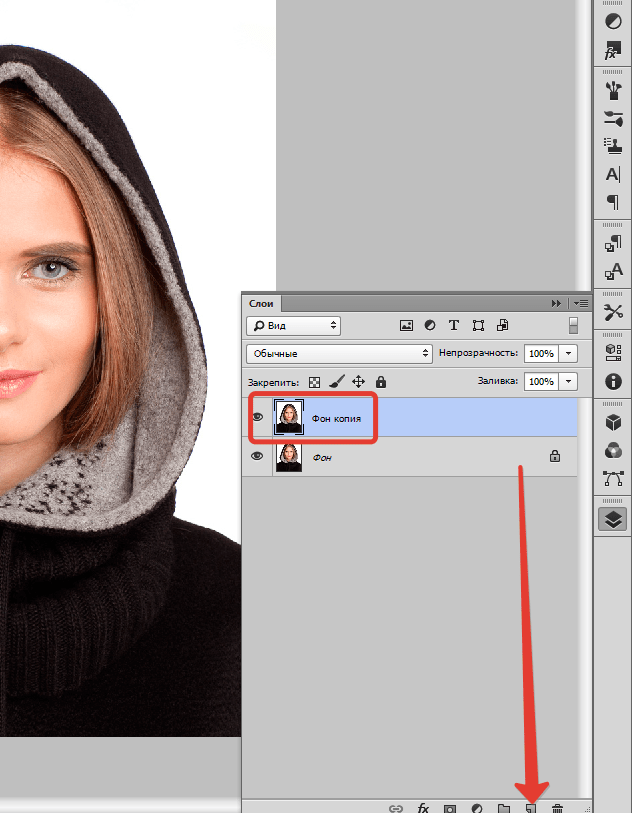 Для этого выберите фоновый слой и затем на клавиатуре используйте Cmd (или Ctrl) — C и Cmd (или Ctrl) — V для копирования и вставки. Новый слой появится над текущим. Лично я предпочитаю вместо этого использовать сочетание клавиш Cmd (или Ctrl) — J на выбранном слое.
