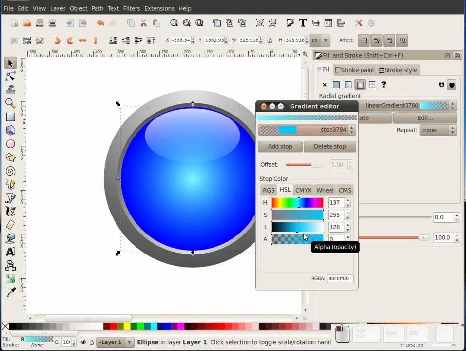 При помощи стиля слоя зальем форму кнопки линейным градиентом для этого идем слои > стиль слоя > наложение градиента либо дважды кликнем по слою с формой кнопки.
