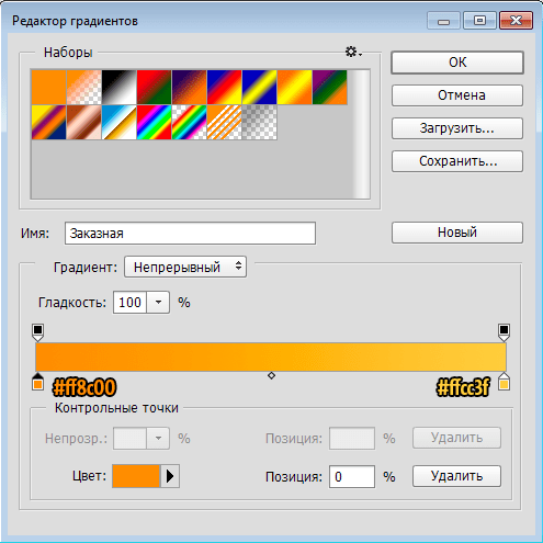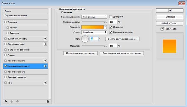 Это будет передняя плоская поверхность кнопки. Чтобы она была похожа на металлическую, необходимо добавить стиль слоя «Наложение градиента» со следующими настройками: