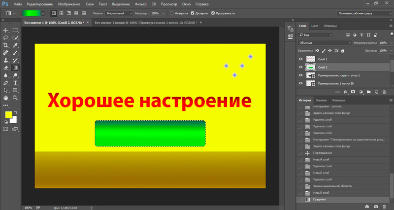 - Шаг 1. Выделить область, которую необходимо залить градиентом. Если необходимо залить слой целиком, то выделение создавать не надо.