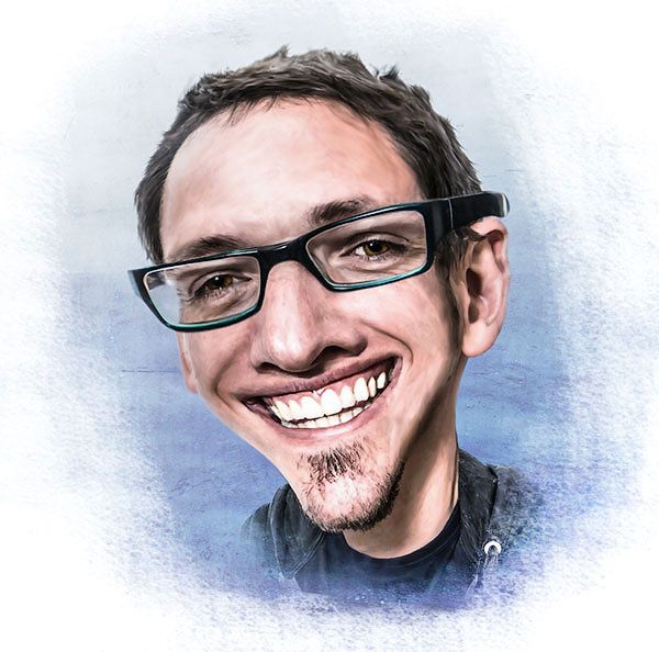 Подготовка фотоОсновой для создания карикатуры служит поиск частей тела, которые от природы уже просятся к увеличению или уменьшению. Если посмотреть на нашу фотографию то можно выделить сразу несколько моментов с которыми можно работать: Это довольно большая челюсть и улыбка очень выразительная. Также обращают на себя очки в роговой оправе, и высокий лоб. На всех этих деталях можно сыграть.