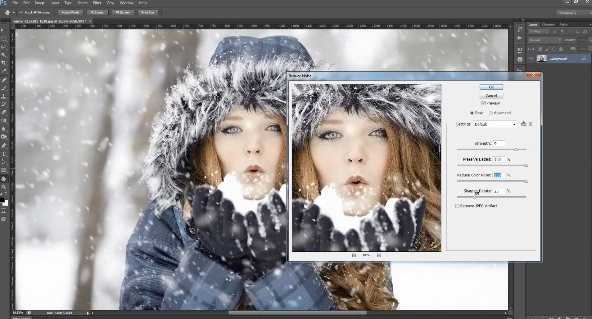 ΠΡΠ»ΠΈ ΡΡΡΠ΅ΠΊΡ ΡΠ»ΠΈΡΠΊΠΎΠΌ ΡΠΎΠ½ΠΊΠΈΠΉ, Π²Ρ Π²ΡΠ΅Π³Π΄Π° ΠΌΠΎΠΆΠ΅ΡΠ΅ ΠΏΡΠΎΠ΄ΡΠ±Π»ΠΈΡΠΎΠ²Π°ΡΡ Π²Π΅ΡΡ Π½ΠΈΠΉ ΡΠ»ΠΎΠΉ, Π½Π°ΠΆΠ°Π² Ctrl + J , Π° Π·Π°ΡΠ΅ΠΌ ΡΠΌΠ΅Π½ΡΡΠΈΡΠ΅ ΠΠ΅ΠΏΡΠΎΠ·ΡΠ°ΡΠ½ΠΎΡΡΡ Π΄Π»Ρ ΡΠΎΠ½ΠΊΠΎΠΉ Π½Π°ΡΡΡΠΎΠΉΠΊΠΈ ΠΊΠΎΠΆΠΈ. Π’Π΅ΠΏΠ΅ΡΡ Π΄Π°Π²Π°ΠΉΡΠ΅ ΠΏΠΎΡΠΌΠΎΡΡΠΈΠΌ Π½Π° ΡΠ΅Π·ΡΠ»ΡΡΠ°ΡΡ.