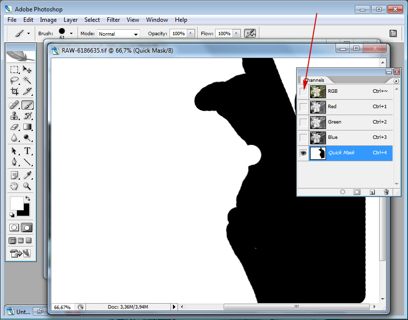 - Перейдите на вкладку в Photoshop с изображением маски слоя, которое вы только что открыли.