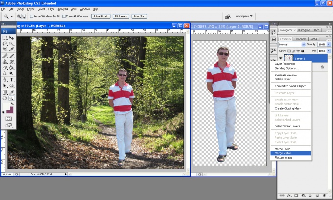 Скопируйте или поместите изображения, которые вы хотите объединить в тот же документ.
