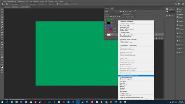 - Выбор цветов на панелях «Цвет» и «Образцы»