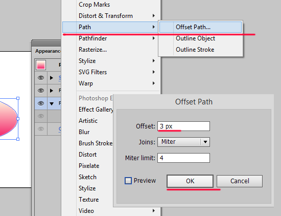 Выберите объект в окне документа. Если вы выберете более одного объекта, самый передний объект в порядке укладки будет находиться.