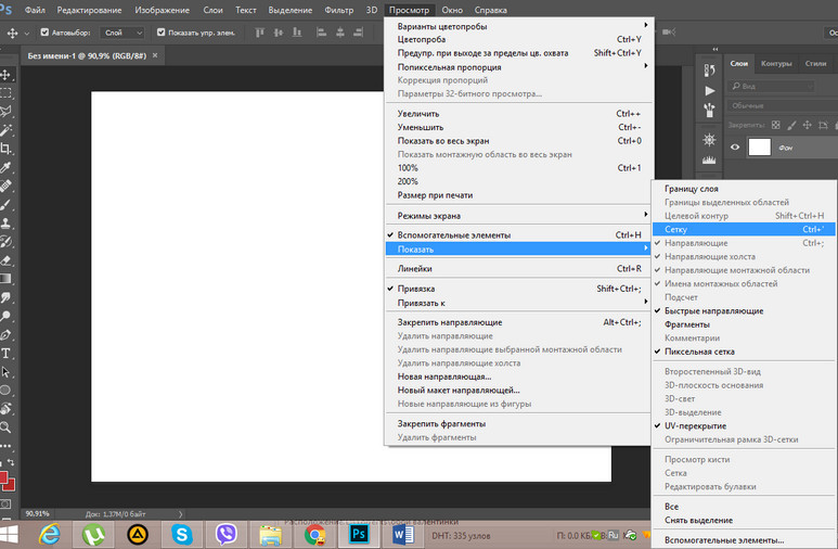 Команда View | Hide Grid(Просмотр | Скрыть сетку) выполняет обратное действие.