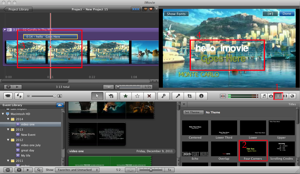 Название добавляется к вашему фильму в позиции указателя воспроизведения.