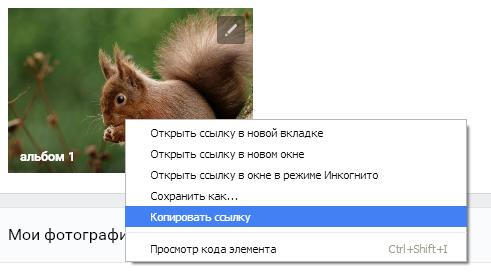 - Скопировать строчку из адресной строки с ID фотоальбома.