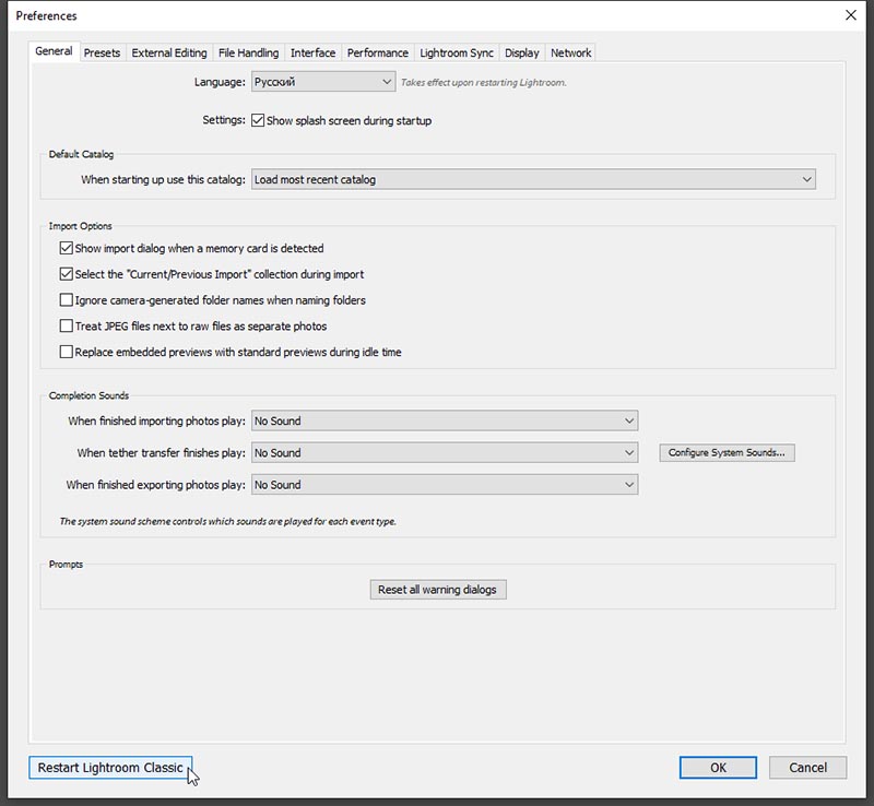 Настройка языка задается во время открытия программы, поэтому она сохранится до следующего запуска Lightroom. Для тех, кто предпочитает более простой вариант, есть небольшое приложение для пожертвований, которое может делать это автоматически. Я не имею никакого отношения к компании, но, похоже, она хорошо справляется со своей задачей. http://www.tj-hd.co.uk/en-gb/languageswitcher/