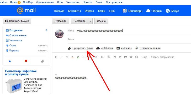 Итак, авторизуемся на сервисе Mail.ru и инициируем создание нового письма.