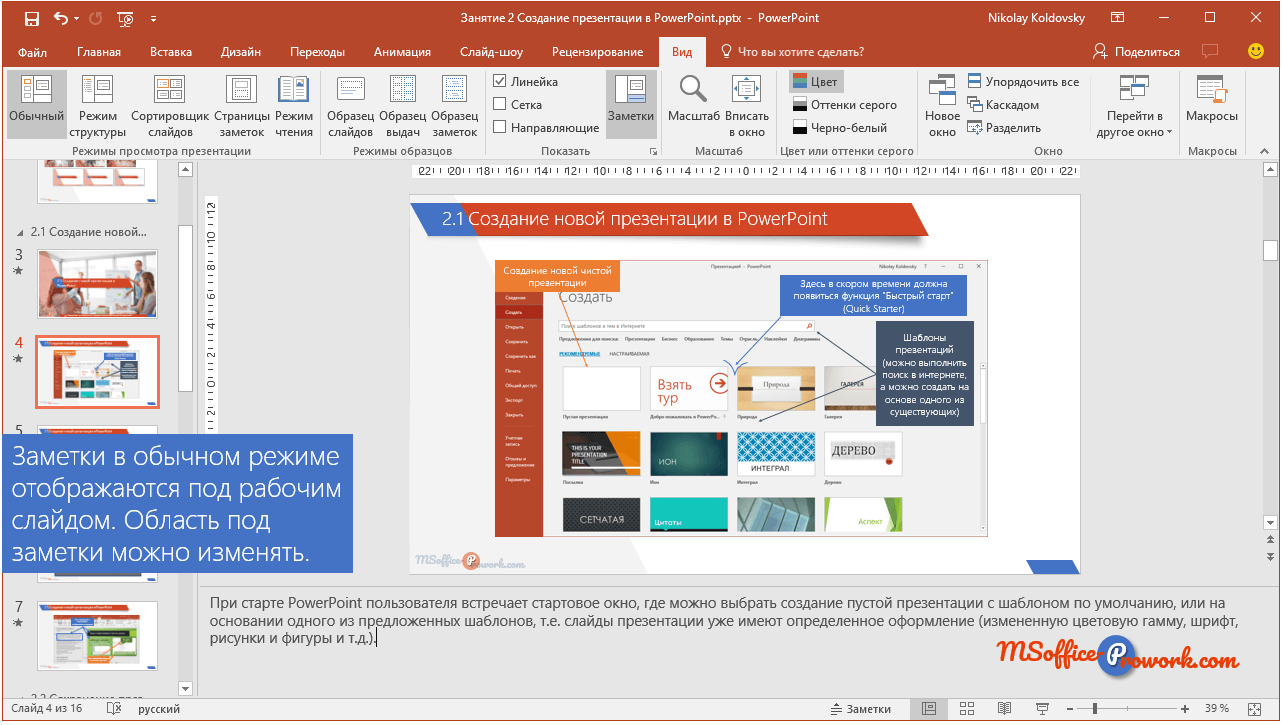 как добавить заметки, работа со слайдами / Справочник :: Бингоскул