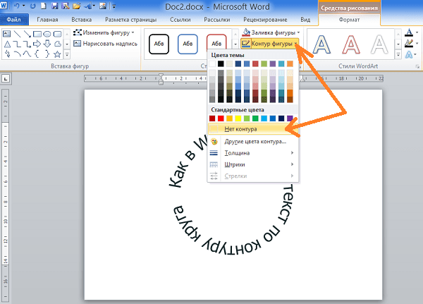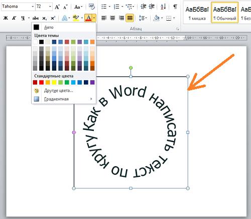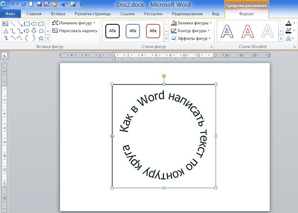 4. После того, как мы получили часть текста ее нужно подвинуть, переместить, но так просто не получится — придется изменить настройки объекта WordArt.