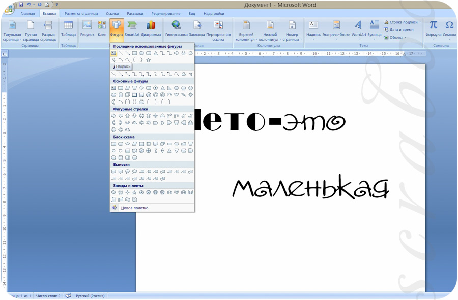 Аналогично таблице размером в одну ячейку, для создания рамки в Word можно обратиться к разделу вставки фигур. К тому же возможности их оформления, предоставляемые программой, куда более широкие.