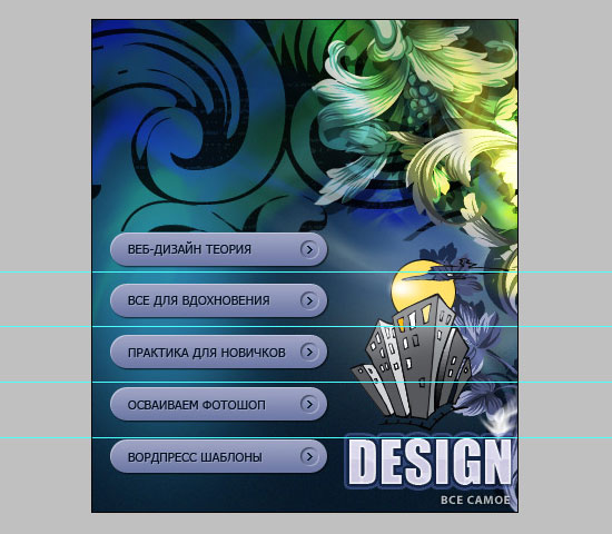 Шаг 3. Создаем в фотошопе строку навигации в нажатом состоянии