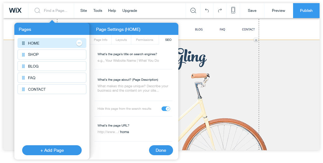 - Войдите в свою учетную запись WIX и откройте редактор WIX.