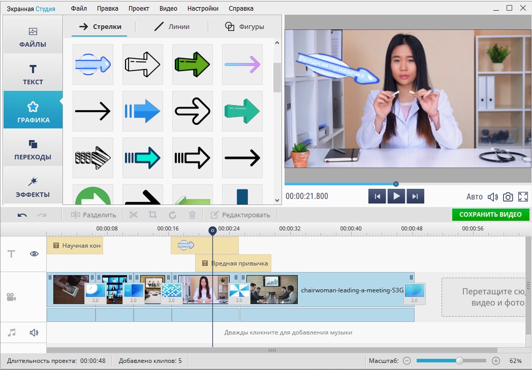 В процессе записи вебинара вы также можете редактировать запись в реальном времени, включая выделение, добавление фигур, слов и линий разных цветов. Очень полезно делать заметки и выделять ключевые моменты.