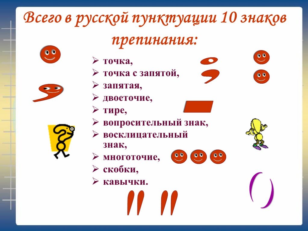 Наши проекты. Похвальное слово знакам препинания- В русском языке 10 знаков препинания: