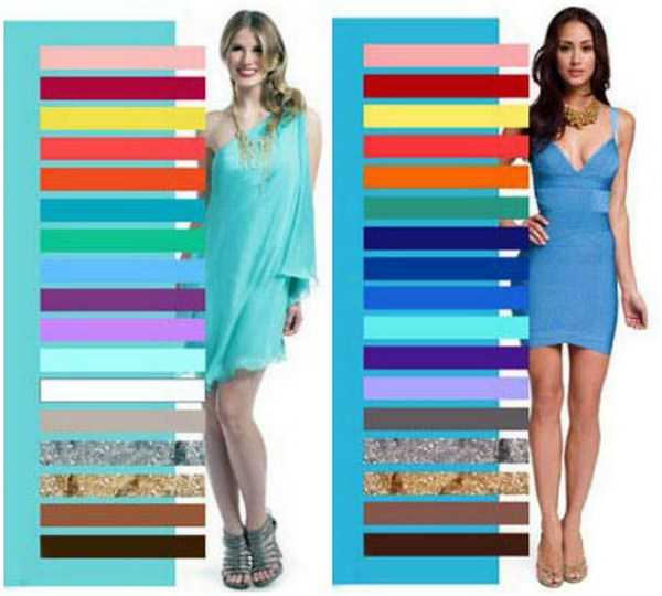 При комбинировании и сочетании синего с другими цветами одежды и аксессуаров, важно определиться с доминирующим тоном. Удачный выбор поможет сделать цветотип внешности женщины.