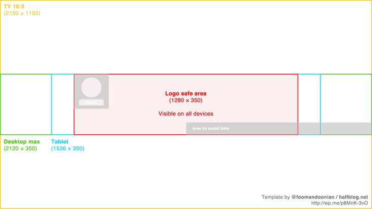 Если зритель смотрит телевизор, это полноэкранное фоновое изображение с соотношением сторон 16:9. Но так как хостинг разрешает загрузить только одно изображение в качестве шапки, то нужно убедиться, что картинка правильно отображается для всех устройств.