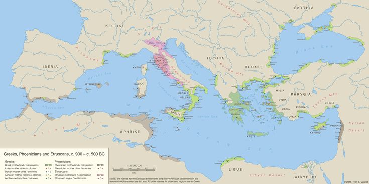 2. Карта мира Гекатея Милетского (5-6 век до н.э.). Гекатей делит мир на три части: Европу, Азию и Ливию, расположенные вокруг Средиземного моря. Его мир – это круглый диск, окруженный океаном.