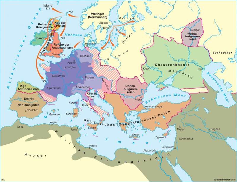 под Пуатье путь арабской коннице в глубь Европы. К концу VIII в. большая часть Западной Европы, за исключением Британии, Пиренеев, Южных Апеннин и Скандинавии, входила в состав франкской империи Карла Великого, официально провозглашенной в 800 г.
