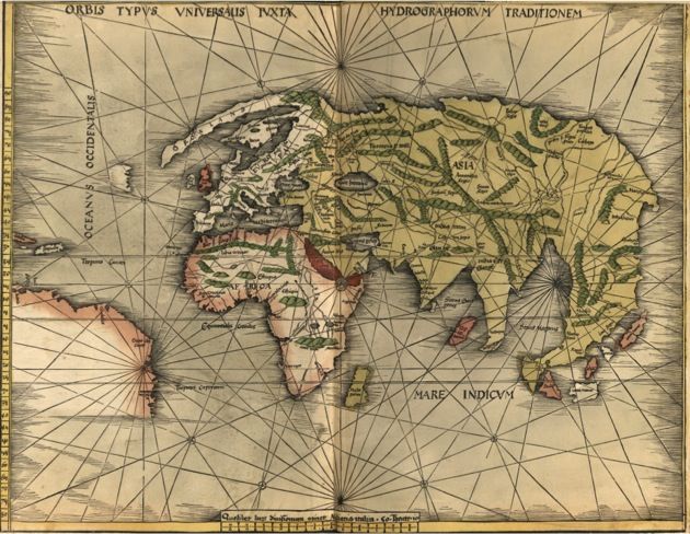 В ней сочетаются традиционные элементы мапп и портуланов, новые знания о дальних странах и теоретические положения Клавдия Птолемея (его труды II века н. э. в эпоху гуманизма переживали второе рождение).