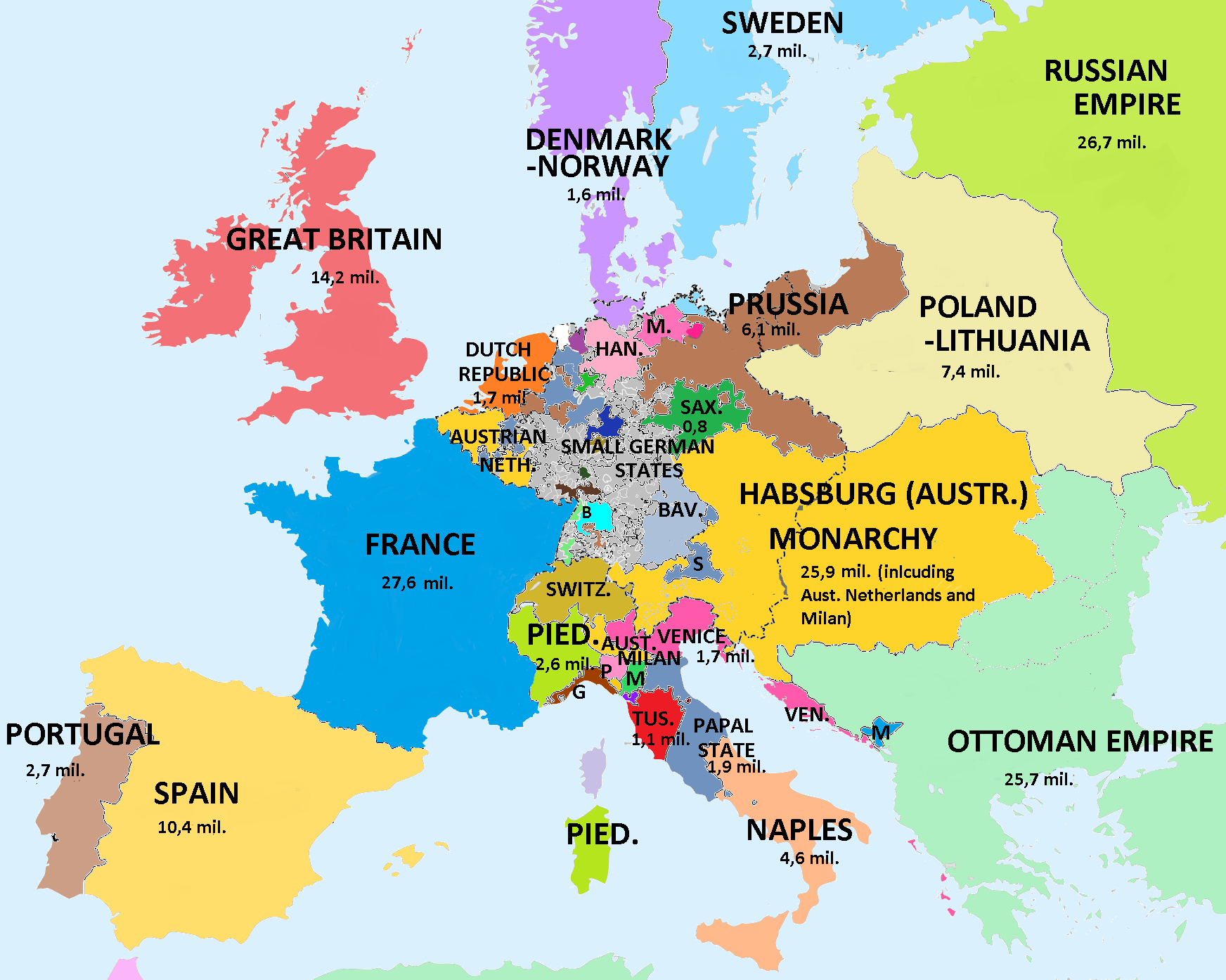 1792 — Россия или Московия в Европе от последних Властей — Античная карта