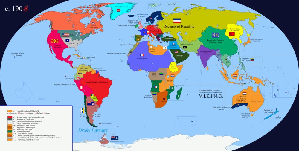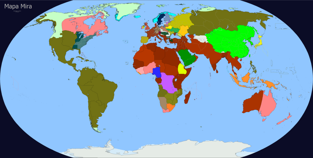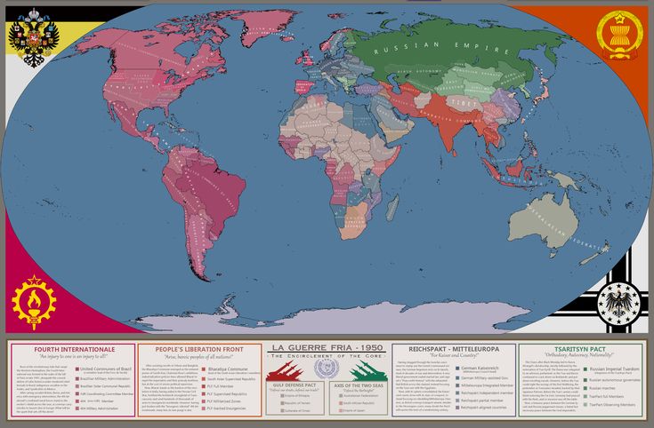 По всей вероятности, более «каноничная» (хоть и менее красочная) версия карты. Так, например, здесь есть остатки США с буферной зоной между ними и японскими территориями в виде Центральных равнин Северной Америки.