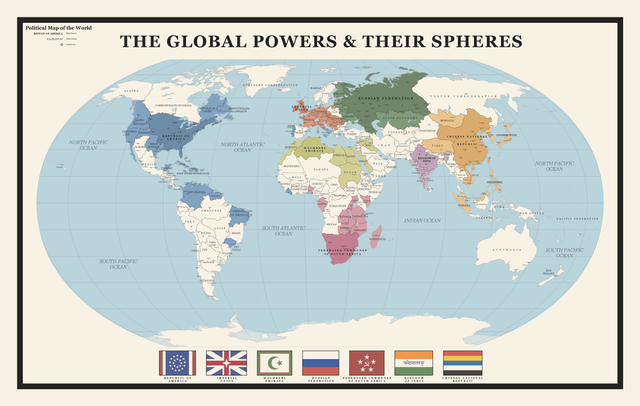 Трехполярный мир, где Китай, поглотивший Россию, Панамериканский союз и, почему-то, Франция, конфликтуют друг с другом