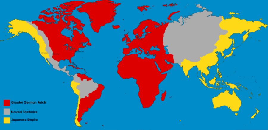 Германия получила в распоряжение почти всю Европу и половину Азии. Японии достался Дальний Восток и Австралия. Обе Америки разделены между Японией и Рейхом.