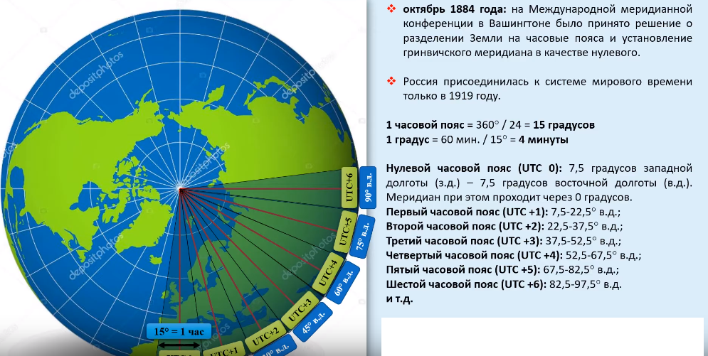 Часовой пояс — это регион на Земле, в котором используется единое время.