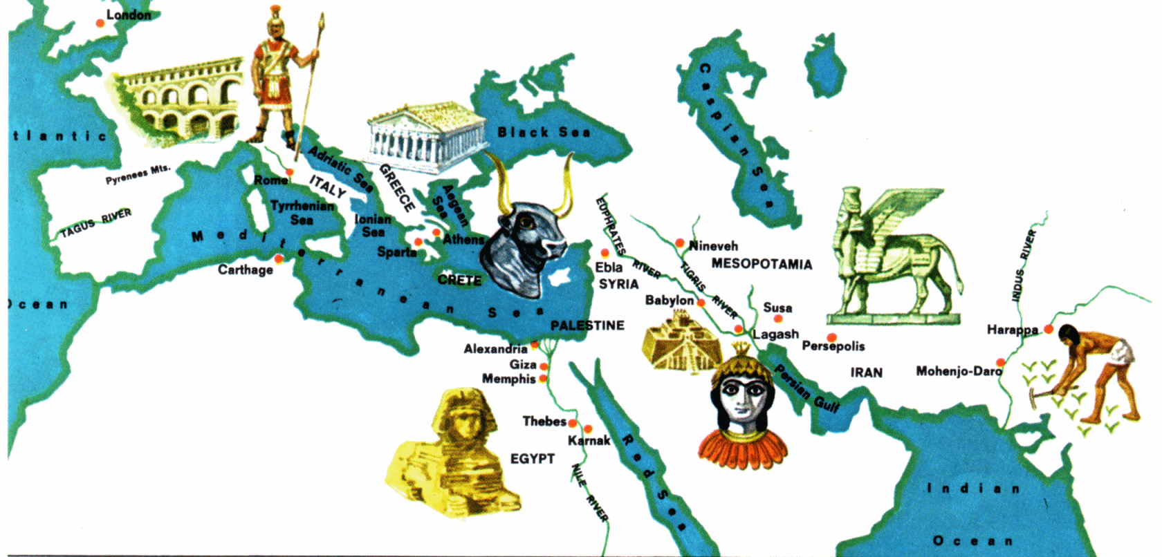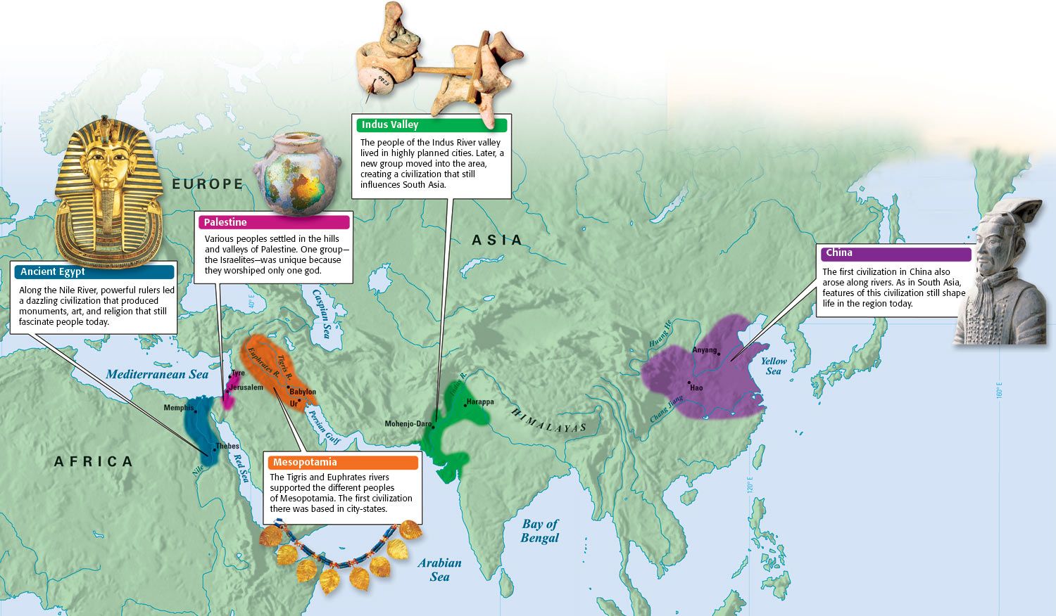 Интересные подробности показывая студентам влияние географии на передвижение и заселение. От раннего человека, древнего Египта, Месопотамии, древней Греции, Финикии, древних евреев, Анатолии, Персидской империи, империи Александра Македонского, ранней Индии, Китая, Рима и Римской империи.