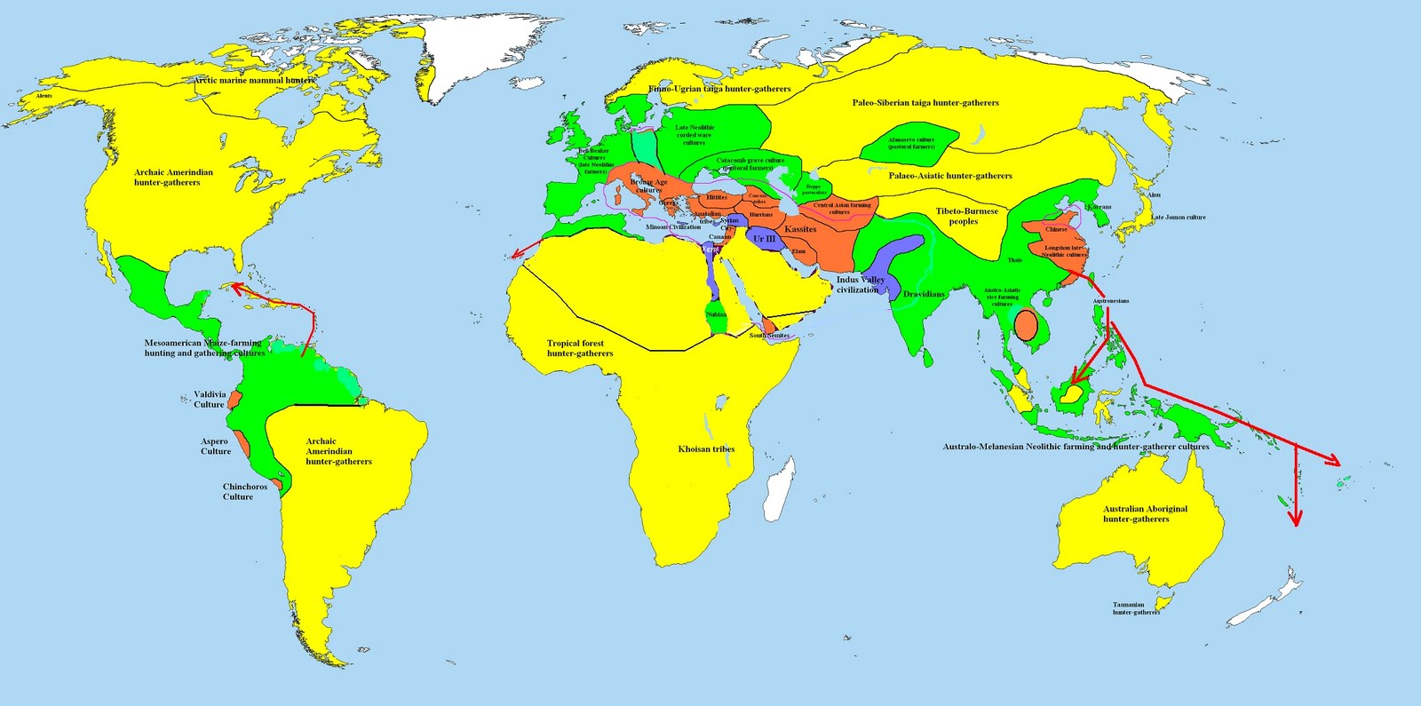 К 3500 г. до н.э. они населяют континент, разделенные между различными культурами охотников-собирателей, каждая из которых адаптировалась к своей региональной среде.