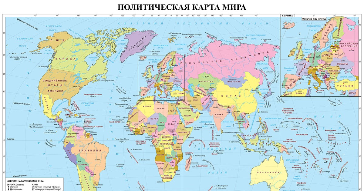 Классическая карта мира от National Geographic. Потрясающая политическая карта мира, доступная в формате большой настенной росписи размером до 14 футов x 9 футов 7 дюймов или больше по запросу. Карта выполнена в фирменном картографическом стиле National Geographic, который был основным во многих их печатных изданиях на протяжении более 75 лет. .Эта карта мира очень детализирована с тысячами названий мест, которые были тщательно размещены на карте для повышения разборчивости и максимального уровня детализации.Будьте уверены, что вы получаете одну из самых точных карт мира, так как все карты National Geographic тщательно исследована с использованием нескольких авторитетных источников и часто обновляется.Классическая карта мира National Geographic использует яркую цветовую палитру со странами, очерченными тонкими контрастными цветами, в сочетании с подробным затененным рельефом и батиметрией синего океана.