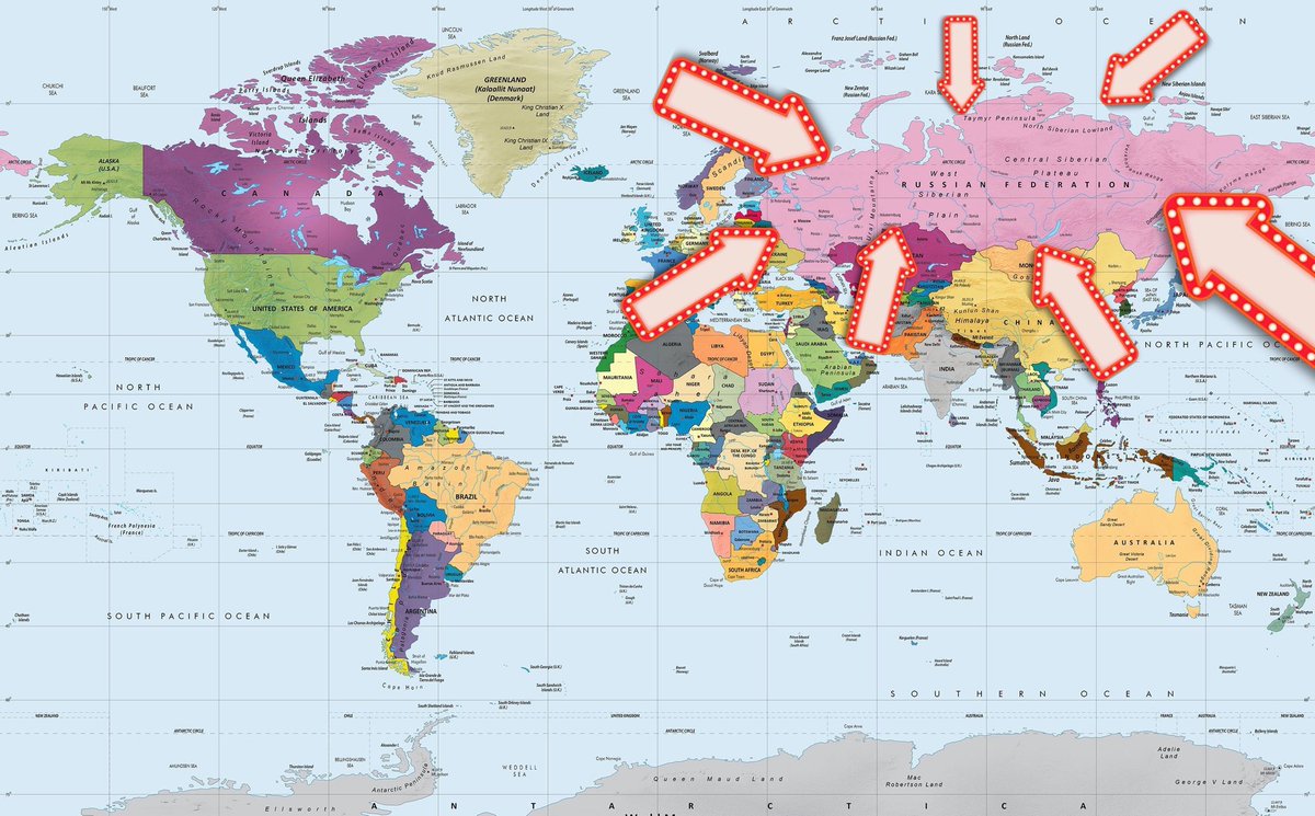 Большая подробная политическая карта мира на русском языке