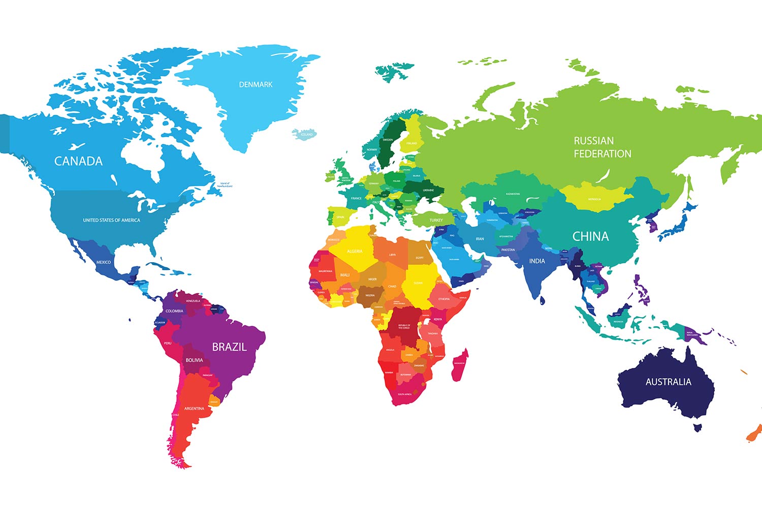 Подробная карта мира от Америки до Азии.